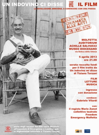 L’obiettivo è quello di raccogliere fondi per la realizzazione del film “Un indovino ci disse”, tratto da uno dei libri più famosi di Terzani. Parte degli incassi del film, al netto delle spese di produzione, andrà ad Emergency, per l’ospedale di Lashkar-gah in Afghanistan, che nel 2004 è stato intitolato a Tiziano Terzani. La struttura è un centro chirurgico in cui il 60% dei pazienti ricoverati è curato per ferite di guerra causate da bombe, mine antiuomo e pallottole; e dove un terzo dei pazienti ha meno di 14 anni. Nell’eventualità che la cifra raccolta attraverso il finanziamento popolare non fosse sufficiente a garantire la produzione del film, l’intero importo, tolte le spese documentate, verrà devoluto ad Emergency.